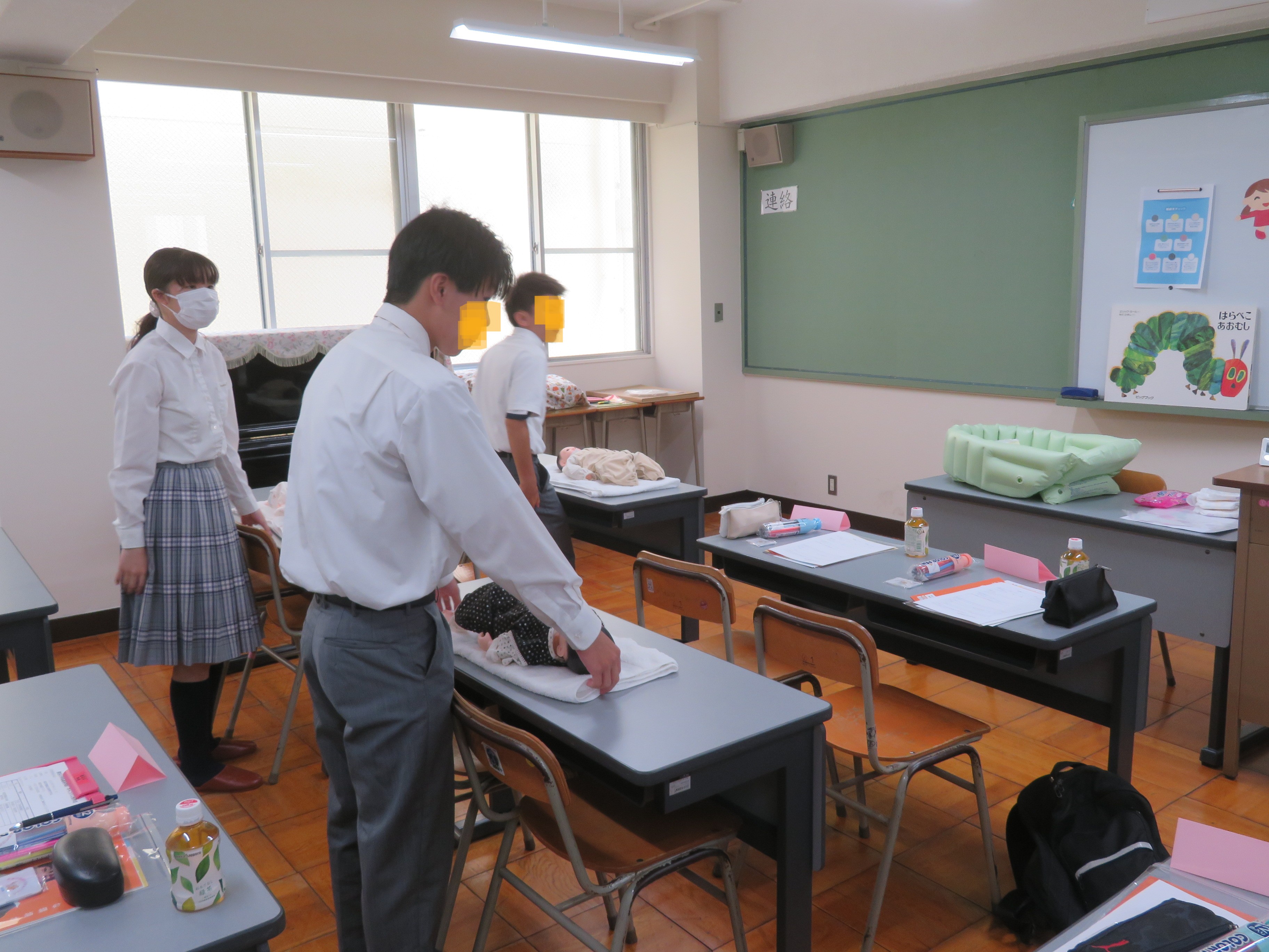 猪名川甲英高等学院 見学会 2025.08.18 猪名川甲英高等学院2年生の学生さんが我が校に見学にいらっしゃいました。 保育に関する授業を体験されました。沐浴人形(実際の乳児とほぼ同じ体重=約3kgに作られています)を手にすることで、 実際の赤ちゃんの感じが伝わってきたことと思います。 緊張した面持ちで、おむつ交換やお着替え等も体験されました。 #箕面学園福祉保育専門学校 #みのお #保育士 #幼稚園教諭 #みのがく #保育 #こども 前 一覧はこちら 次