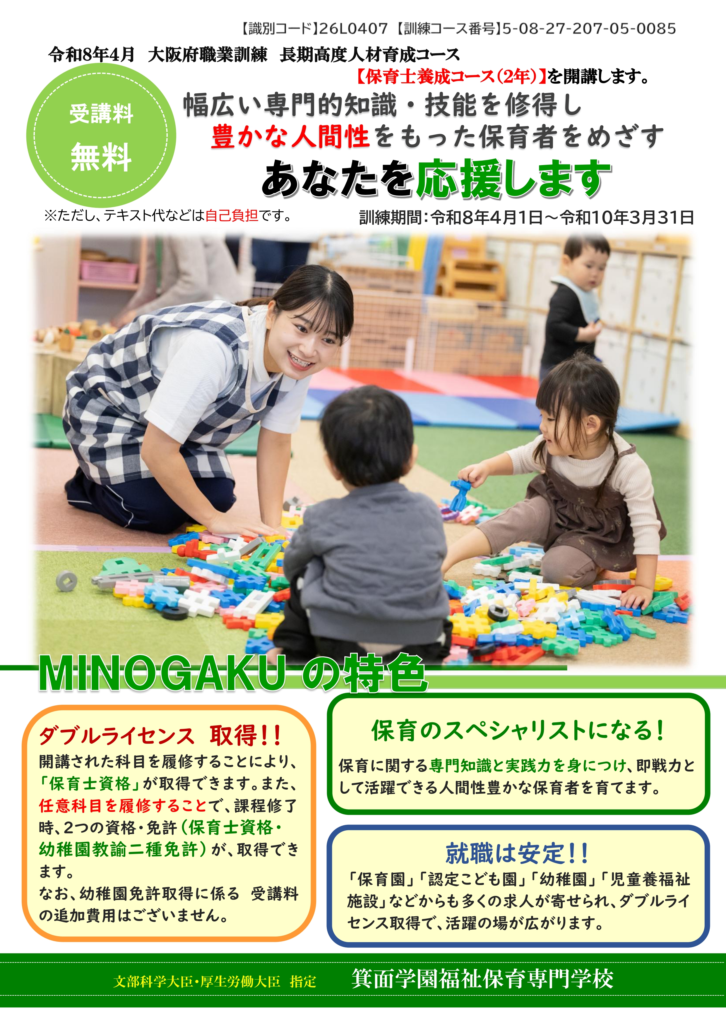 大阪府委託訓練事業【保育士養成コース(2年)】説明会ご案内