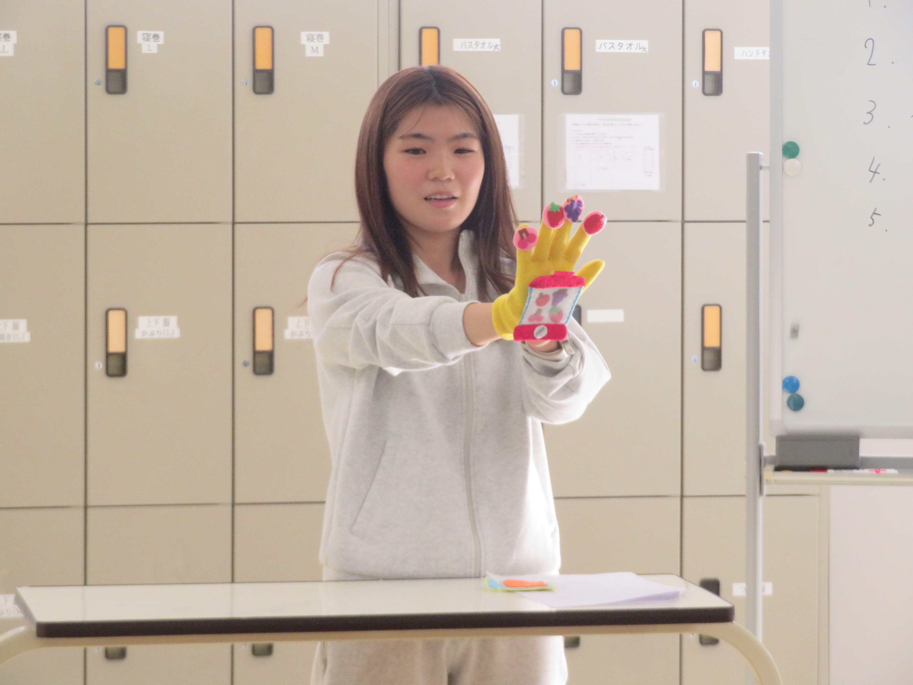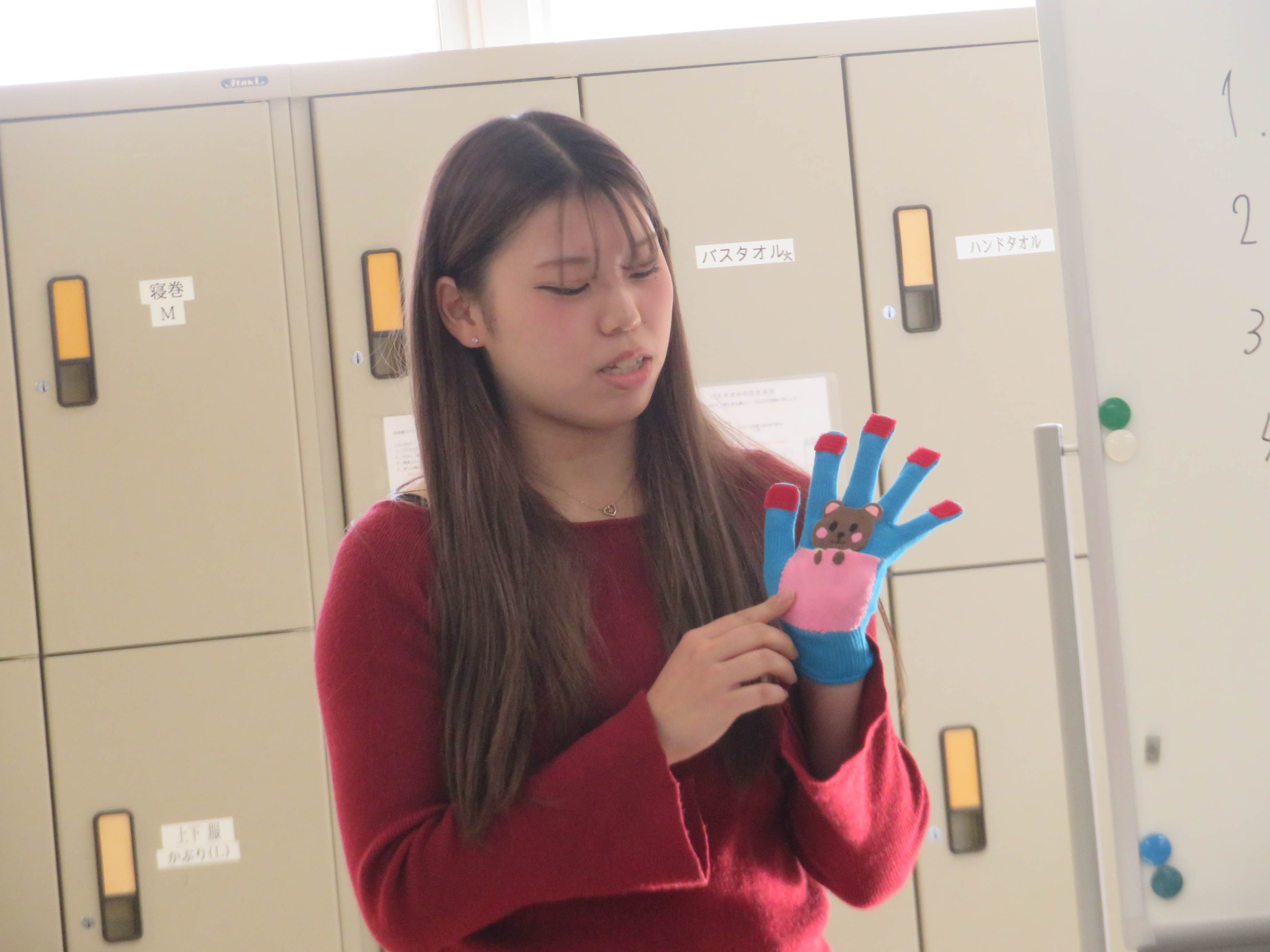 手袋シアター 2025.12.08 お話の内容を手袋に表現する手袋シアター。手作りのぬくもりが伝わってくる作品が勢揃いしました。 実際に作品を使って発表し、空間と表情・音声を使っての表現を体験しました。素敵な表情があふれています。 前 一覧はこちら 次