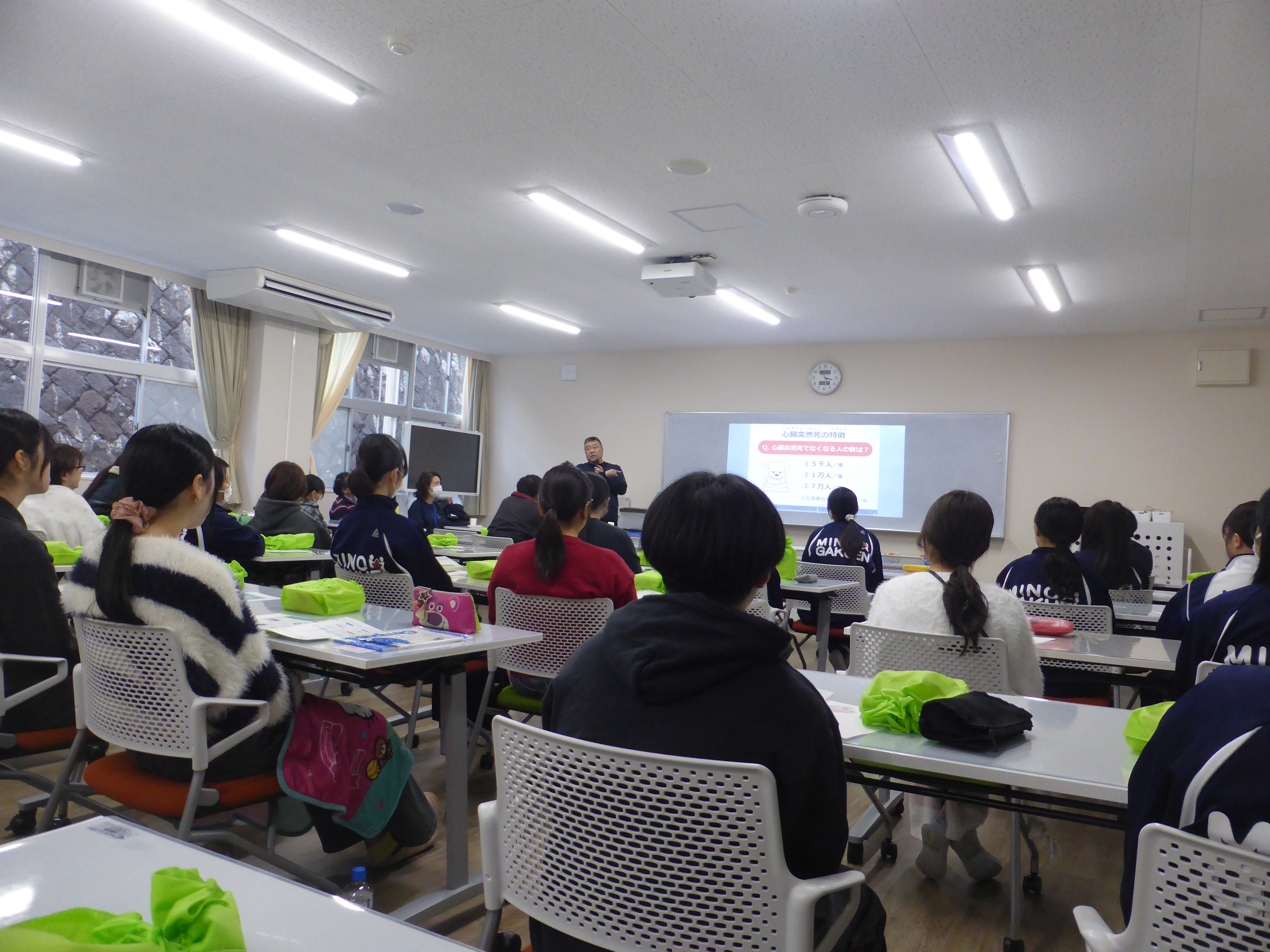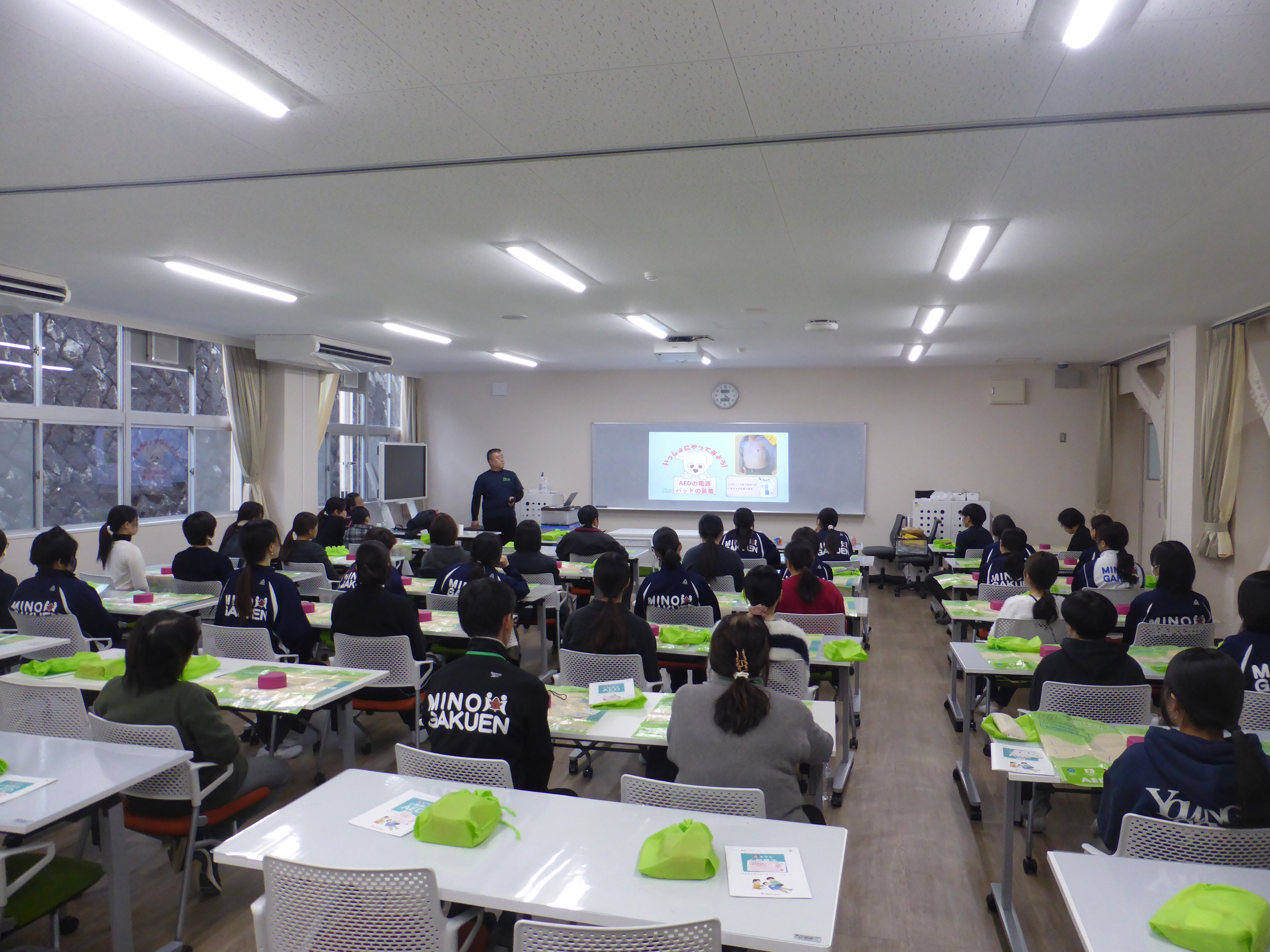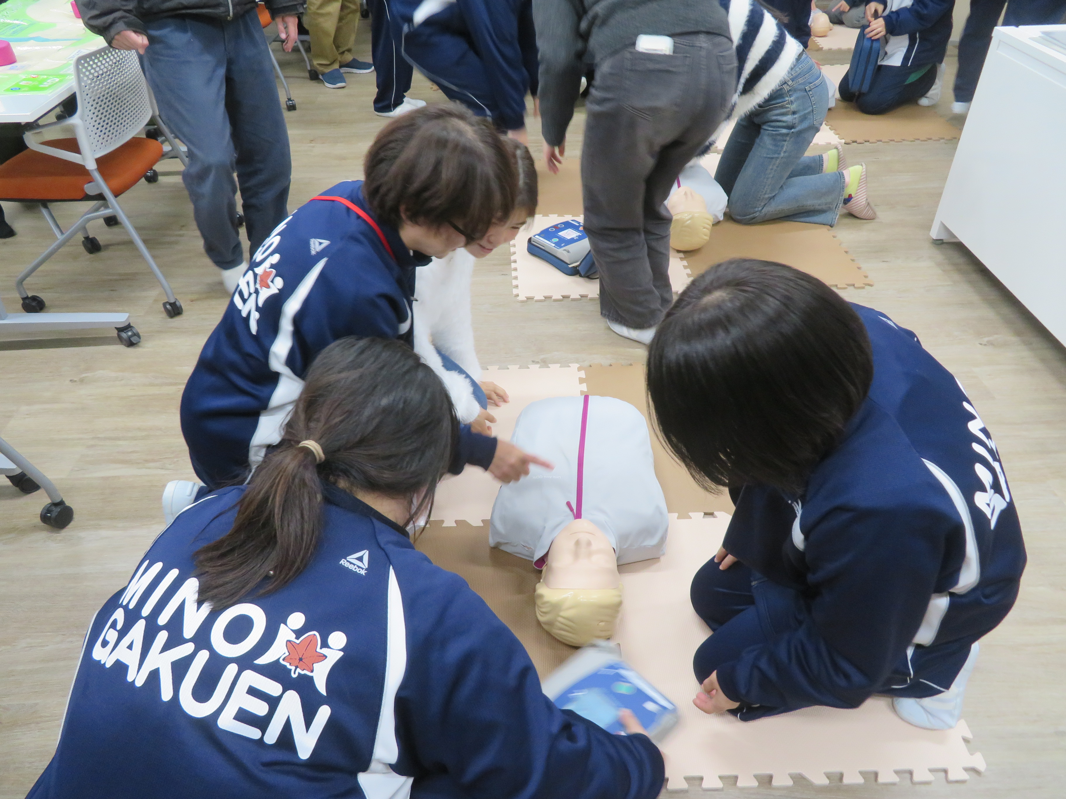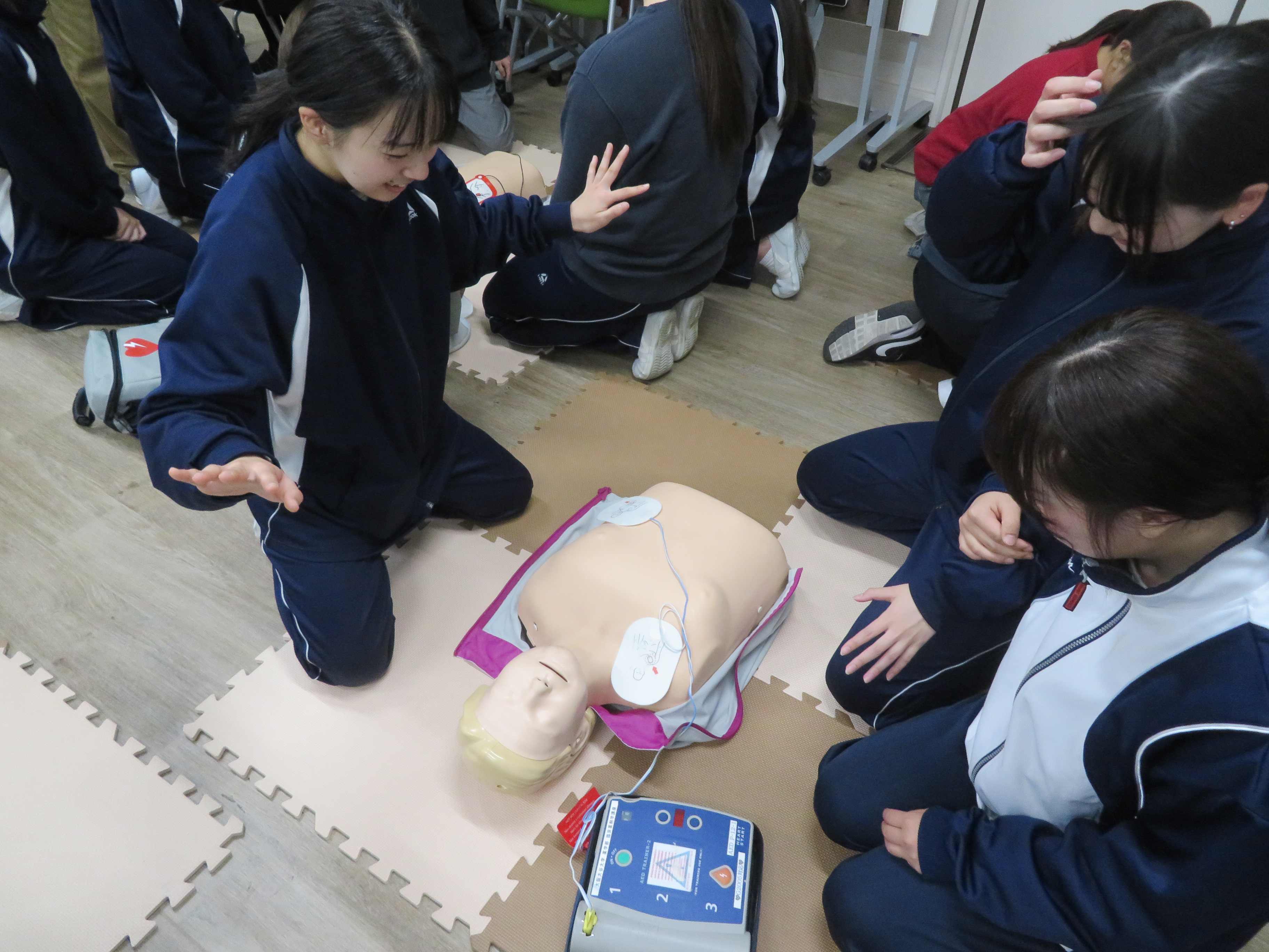 AEDの使用方法、胸骨圧迫の行い方、エピペンの使用法、学ぶことがたくさんありました。