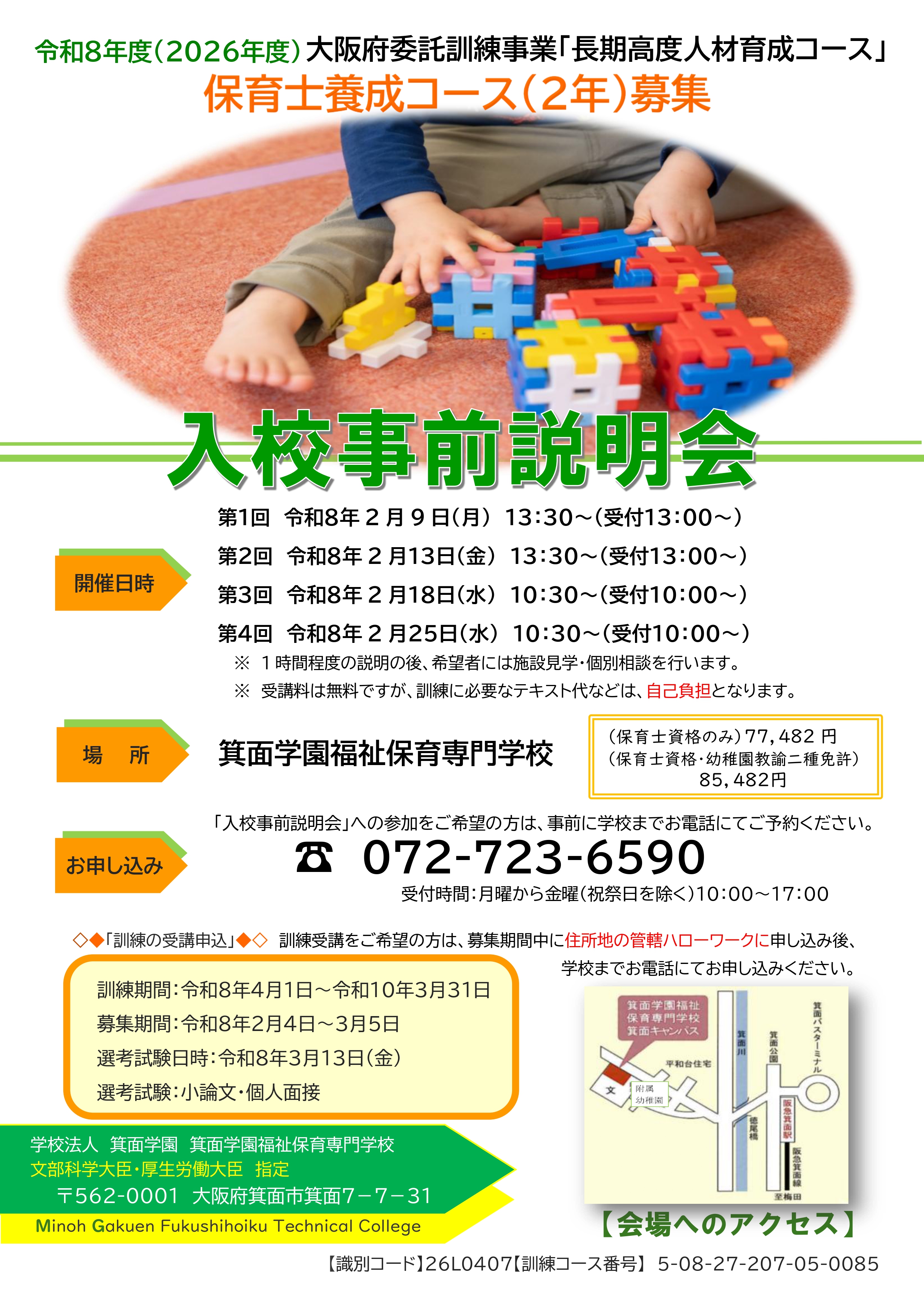 大阪府委託訓練事業【保育士養成コース(2年)】説明会ご案内